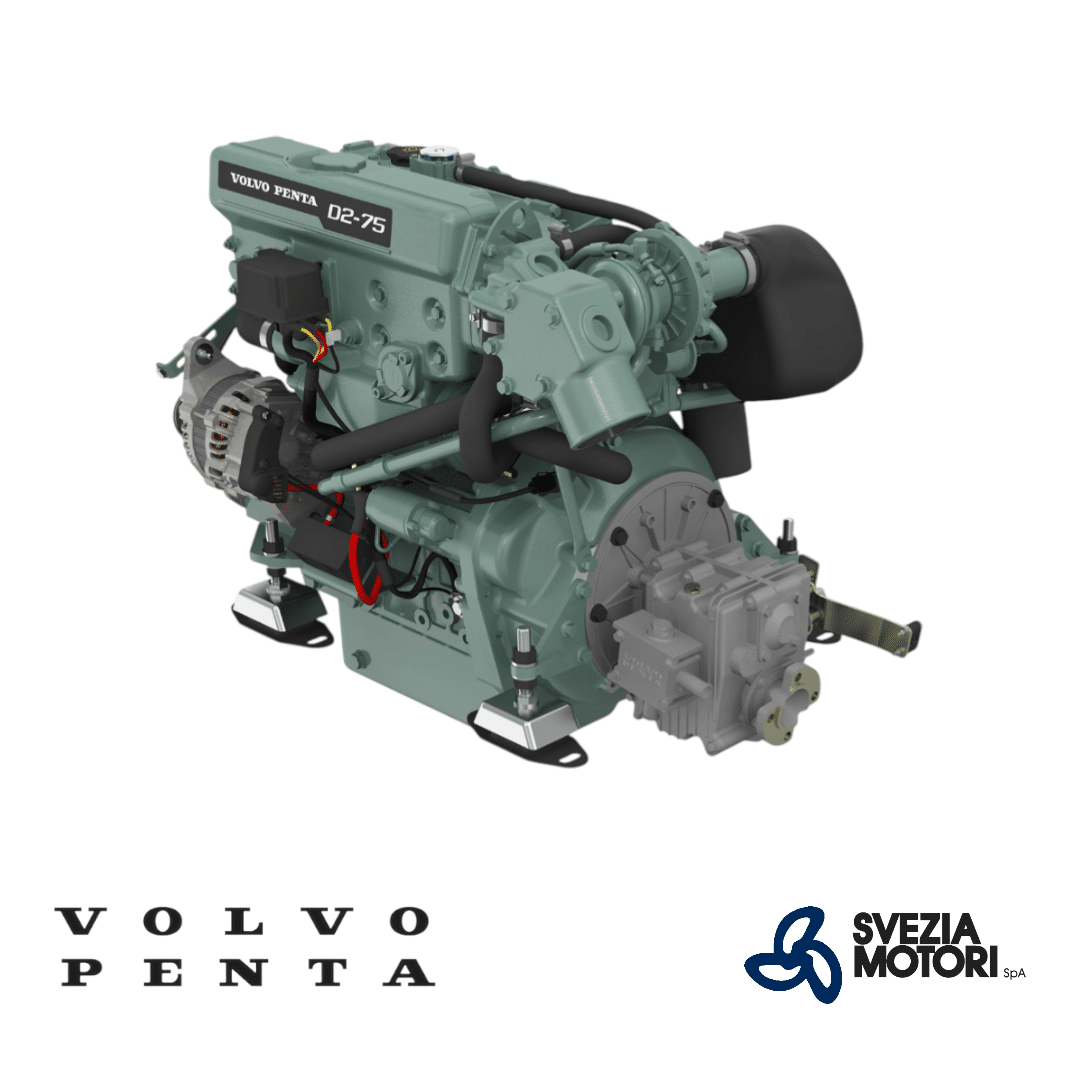 Il Volvo Penta D2-75 è un motore diesel da 2.2 litri e 4 cilindri in linea dotato di intercooler, pompa di iniezione in linea a camme e raffreddamento ad acqua dolce. Grazie ai bassi regimi di navigazione, il motore è silenzioso e produce vibrazioni minime.